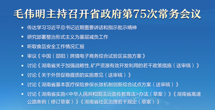 • 毛偉明主持省政府第75次常務會議 部署醫保參保、外貿促穩提質、礦產資源開發利用等...